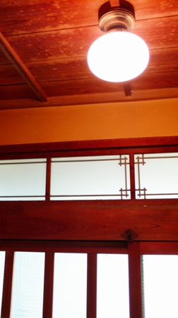 玄関の欄間の細工と玄関灯がいい味ですね。