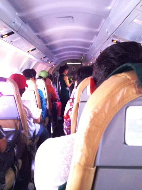 次に国内線の20人乗り位の小さい飛行機で、かつての王族の避暑地ポカラへ30分のフライトです。小袋に入ったお菓子と甘い炭酸ジュースが出ました。