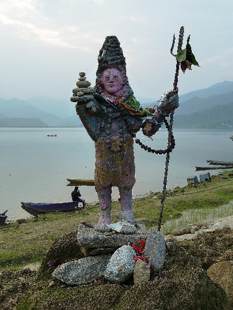 湖のそばにたたずむカラフルな神様です。なぜかシンパシーを感じました。