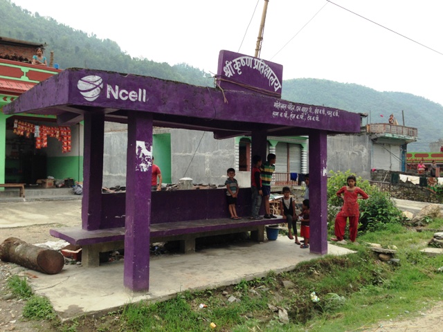 村のバス停は紫色です。素朴な村の雰囲気とのコントラストがかっこいいです。