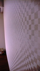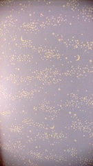 遊び心のある壁紙を洋室のアクセントとクローゼットに採用しました。照明を落とすとクローゼット内の壁が・・・