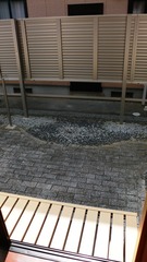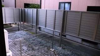 アルミ製濡れ縁付のテラス。隣家との境は目隠ししつつ、防犯にも配慮した形を採用しました。