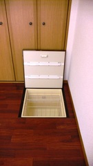 床下収納と玄関収納もあります。玄関収納内にはカギを掛けたり長物を下げたりできるフックと可動棚があります。