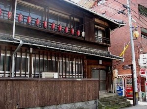 史跡料亭花月 ここの柱には坂本龍馬が付けたと云われている刀創があります。現在も営業中で、芸子さんも呼べます。